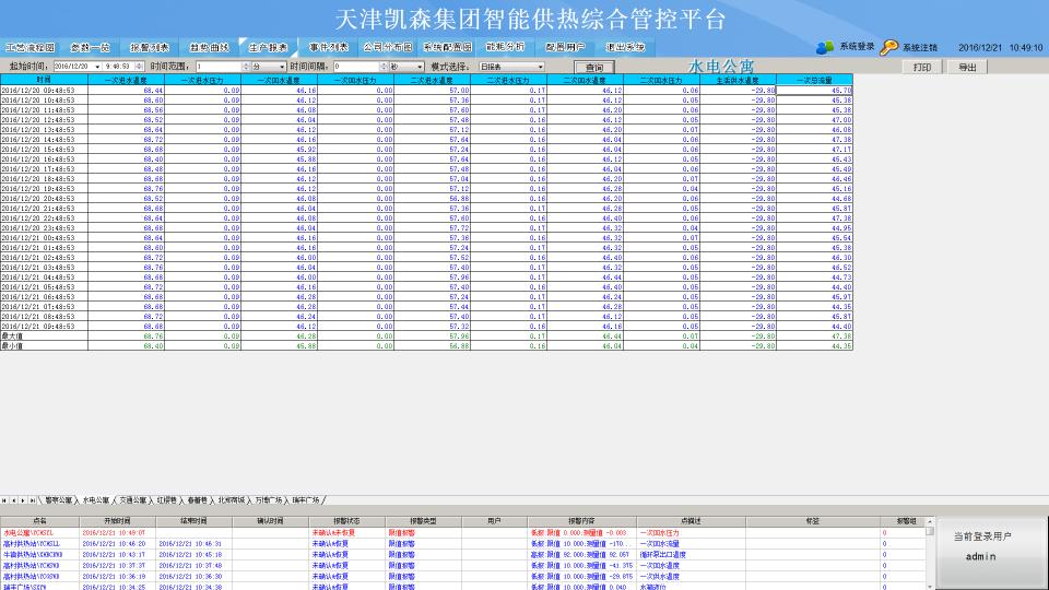 將采集的數據進行歸納、分析和整理,實現基礎熱力管理功能,包括各個供熱站和換熱站的二次供水溫度、二次回水溫度等重要對比數據,以便可以更好地進行片區同類供熱區域供熱效率進行直觀有效地比對,從而能指導運行人員進行查找原因和后續改進。