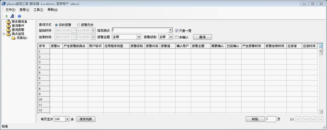 同樣使用pSpace管理工具psMonitor也可以對選中測點進行歷史數據查詢,選擇好開始時間、結束時間、查詢類型,點擊“查詢”按鈕,歷史數據就會以列表或曲線的方式在下方顯示。