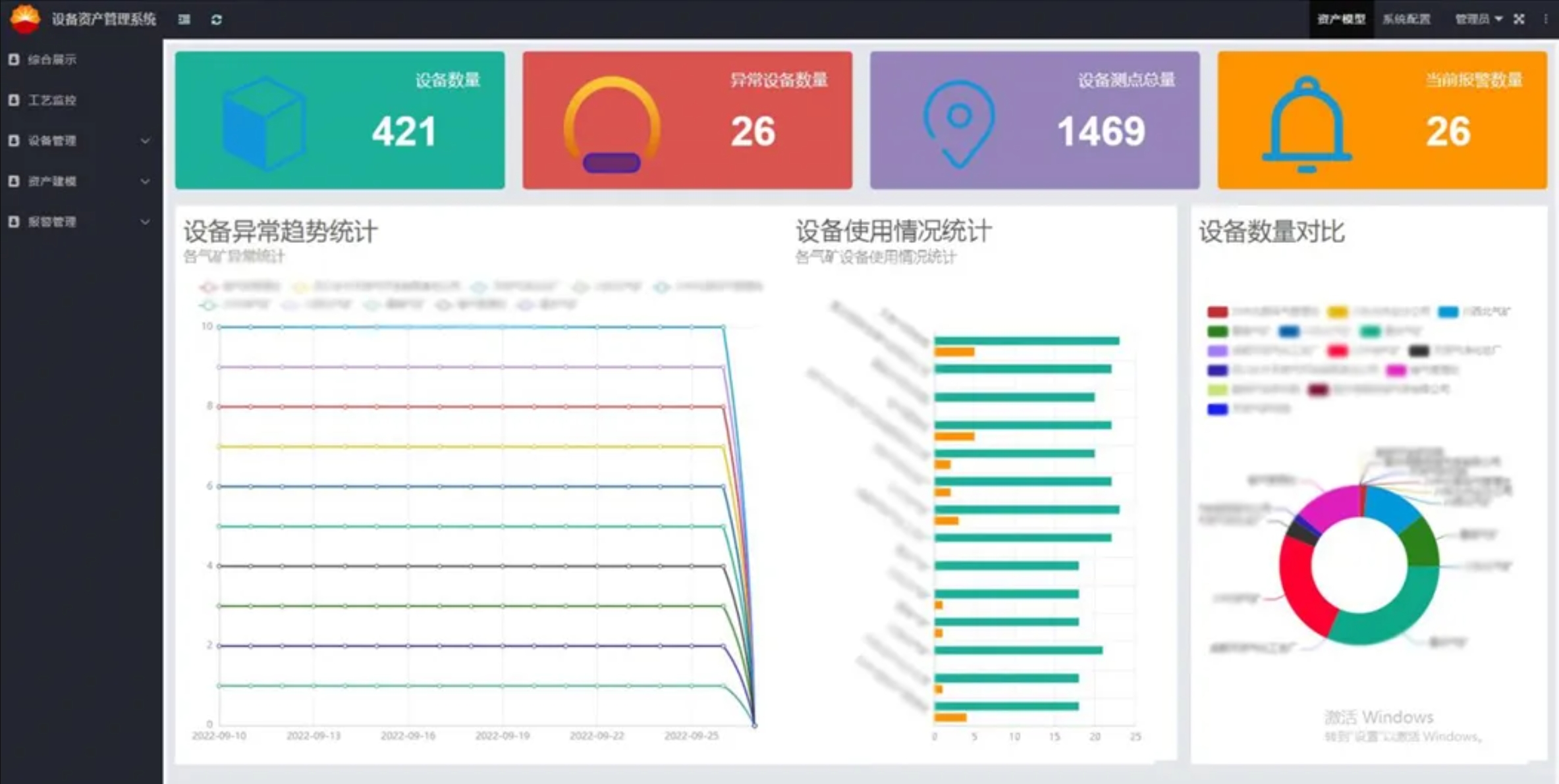 各場站設備運行情況可通過直觀的設備工藝圖展現給管理者,使管理者可實時遠程查看各場站重要生產設備動態數據、靜態數據,以及報警信息,從而實現遠程實時管控。