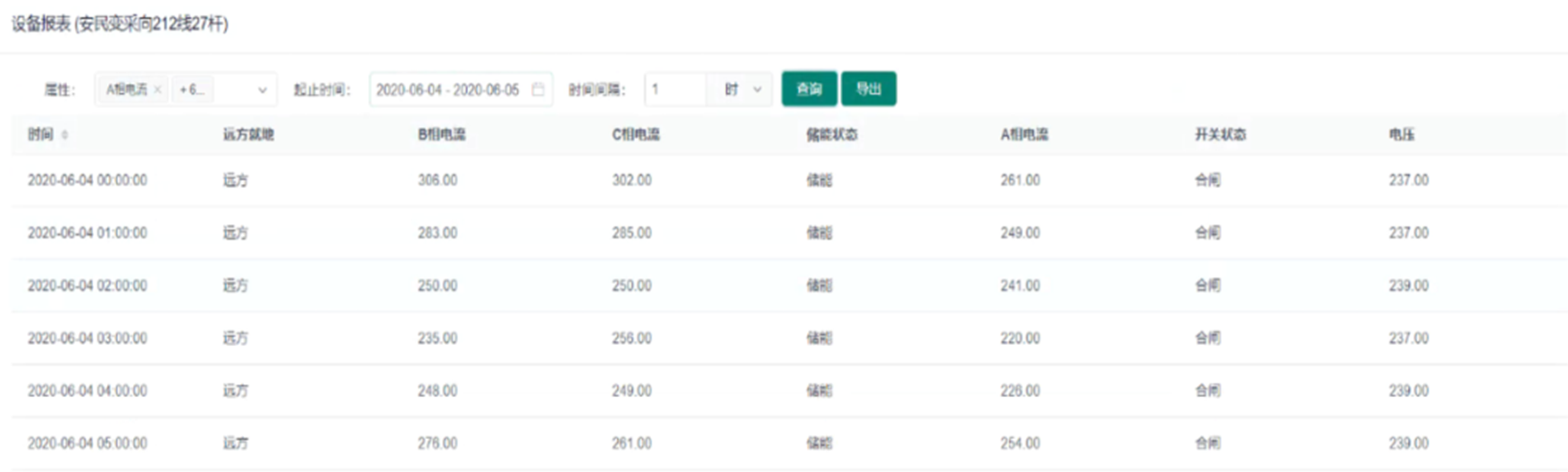 設備報表可以對設備所有參數(shù)進行分時段查詢、時間間隔單位可分為秒、分、時、日,具體時間用戶可自由調(diào)整,具備導出表格功能。