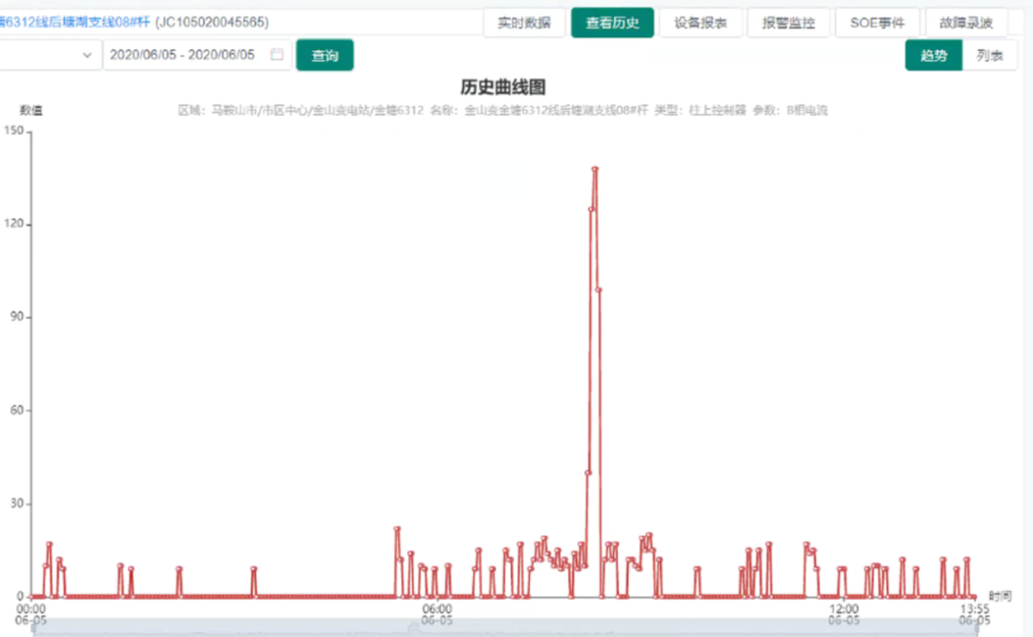 可根據(jù)用戶需求自由調(diào)整時間段進行歷史查詢,歷史查詢可以對數(shù)據(jù)分為歷史趨勢查詢和歷史列表查詢,列表查詢可導出Excel。