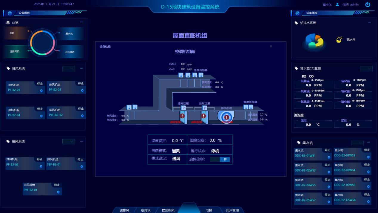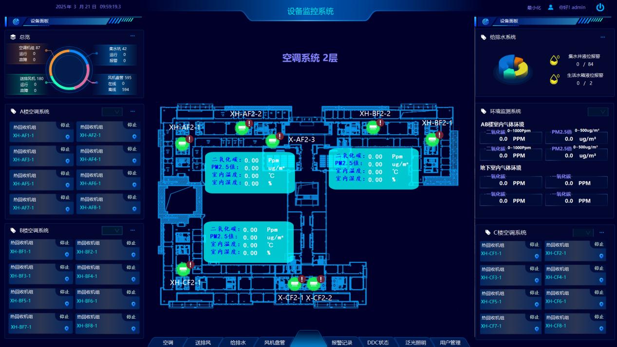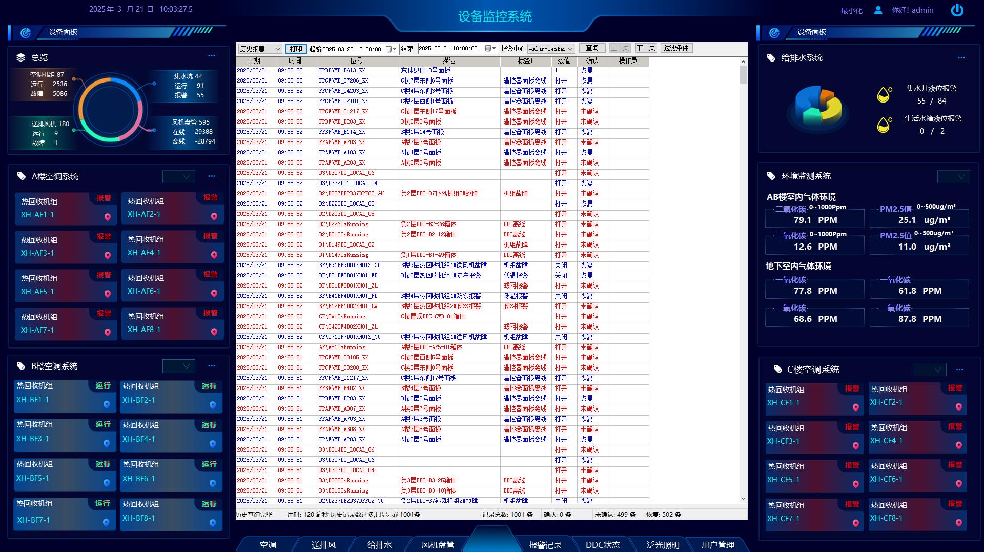 例如,空調(diào)系統(tǒng)監(jiān)控畫面可實時顯示各機(jī)組溫度、濕度、風(fēng)量等參數(shù)的變化,以及機(jī)組啟停狀態(tài),便于管理人員及時掌握設(shè)備運行情況。