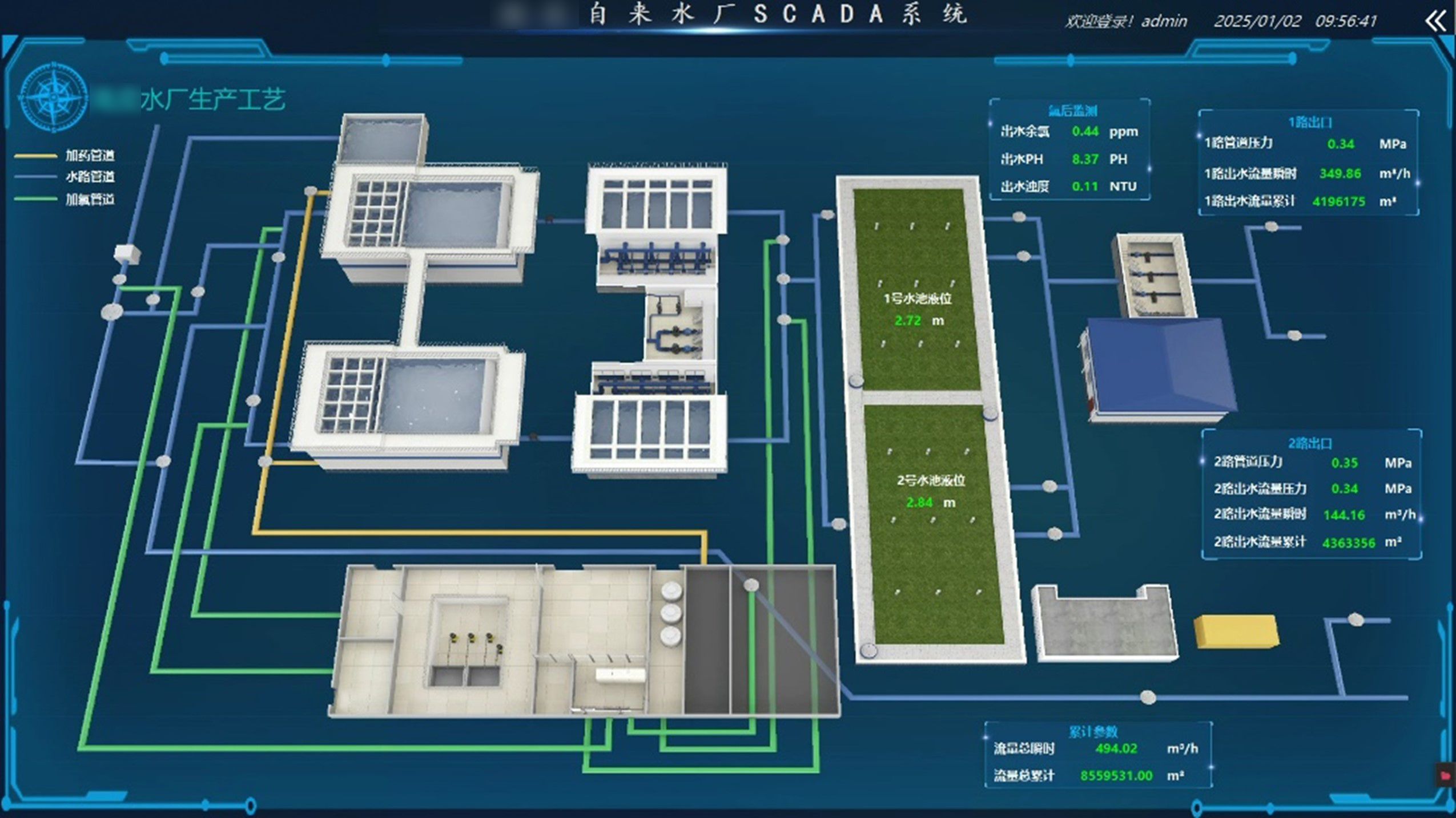 某自來水廠以“智慧化”與“精細化”為目標,依托力控SCADA平臺組態軟件eForceCon,構建以水廠安全生產為核心的綜合生產SCADA系統,實現生產過程的統一監控與管理。