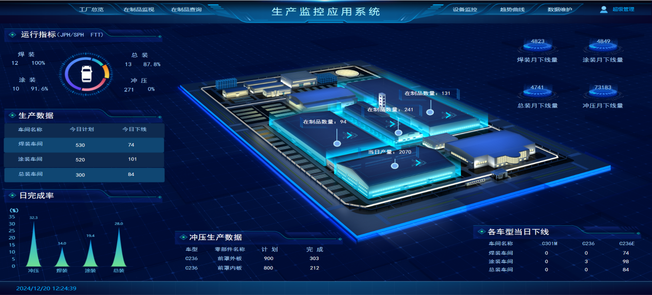 實現對整車制造四大工藝車間生產過程信息的實時監視與控制,為車間生產現場提供實時的、可視的生產決策建議。