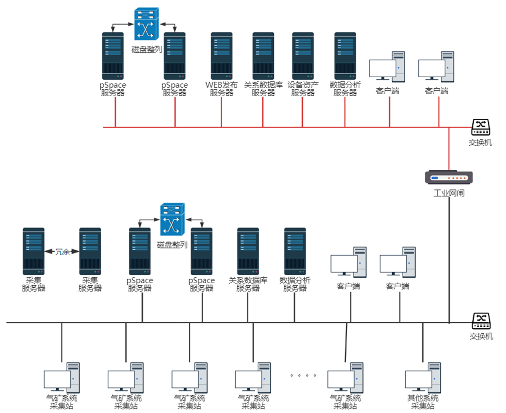 采集服務器由力控IO SERVER構建,主要為系統提供實時數據管理支撐,負責處理、存儲、管理從二級單位推送的實時數據,并將采集解析后的數據推送到pSpace數據庫服務器。
