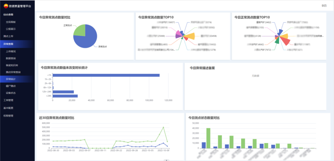 提供數據質量分析系統,檢驗數據標簽合規性、統計分析數據質量、異常測點監控、僵尸點管理、場站通信狀態及工單應用等功能。