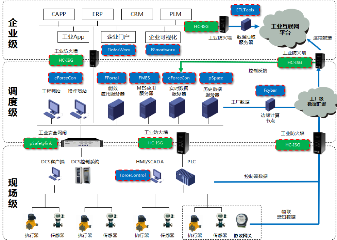 工業自動化軟件:主要包括監控組態軟件ForceControl、SCADA平臺組態軟件eForceCon、工業物聯網關 FCloudComm等,可提供各行業生產實時監控解決方案。工業生產管控軟件:包括實時歷史數據庫pSpace、低代碼的生產管控軟件開發平臺FinforWorx、工業仿真建模與控制優化工具ForceSim等,通過系列產品為依托來構建智能制造、智慧市政等行業的管控一體化解決方案。工控信息安全產品:主要包括工業防火墻、工業隔離網關、工業隔離網閘、安全審計產品等,助力工業企業等保 2.0體系建設。工業云產品及解決方案:主要包括云邊一體化協同解決方案、工業邊緣計算服務、控制及網關、工業物聯網平臺、工業APP開發工具等,助力企業數字化、智能化轉型。