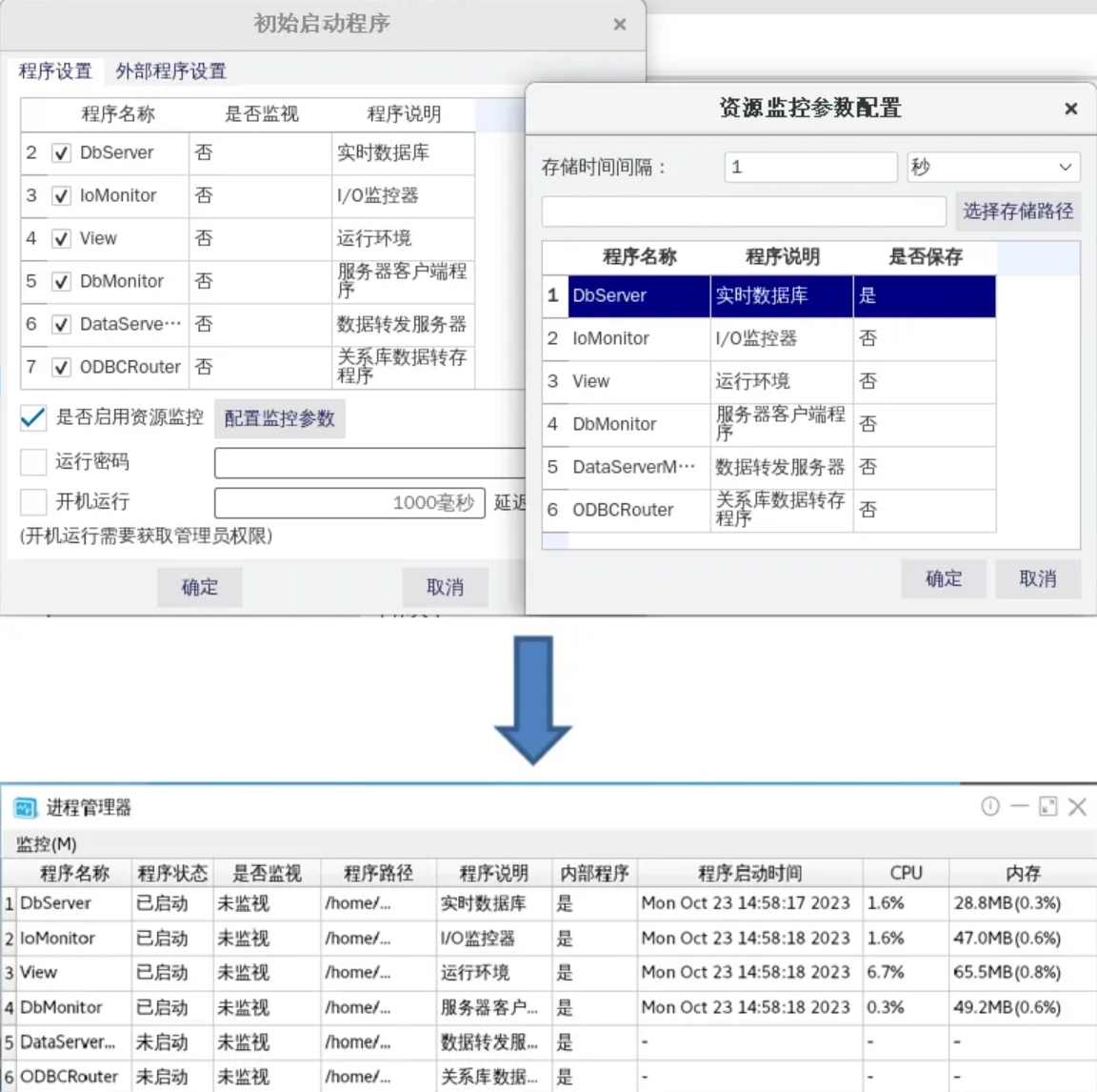 統一管理軟件服務:統一管理軟件所有服務,提供程序運行狀態監測,同時對這些程序進行啟動、停止和監視,資源監控可顯示各項程序啟停時間、運行狀態、CPU、內存等信息,確保管理者對工業現場的資源狀況了如指掌。