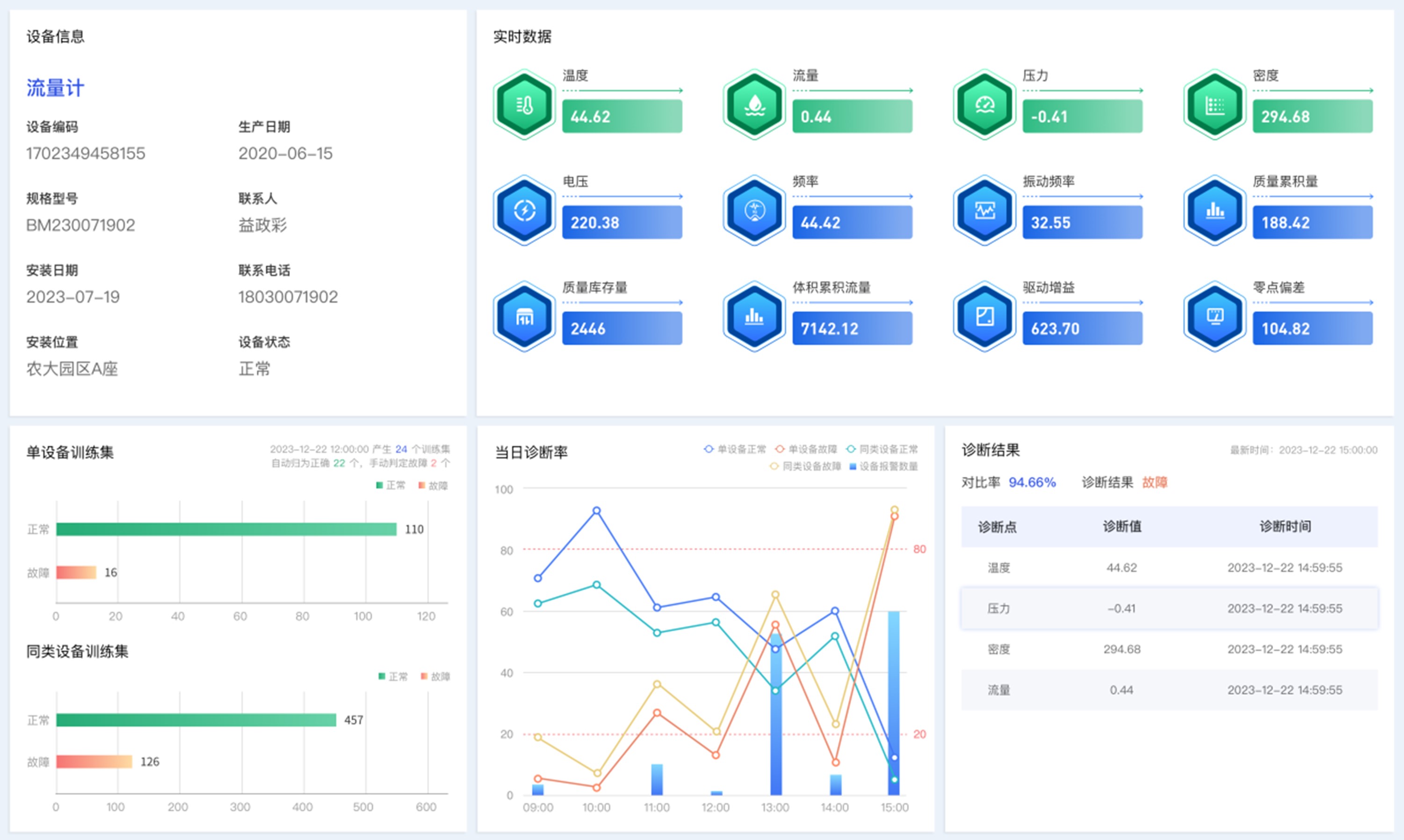 訓(xùn)練集按照單設(shè)備、同類設(shè)備兩個維度訓(xùn)練形成健康診斷模型,基于設(shè)備實時數(shù)據(jù)采集和訓(xùn)練模型進行故障預(yù)測,提前發(fā)現(xiàn)并提醒設(shè)備運轉(zhuǎn)過程異常,實現(xiàn)設(shè)備預(yù)防性維修,保障生產(chǎn)安全,避免因設(shè)備故障產(chǎn)生安全隱患。