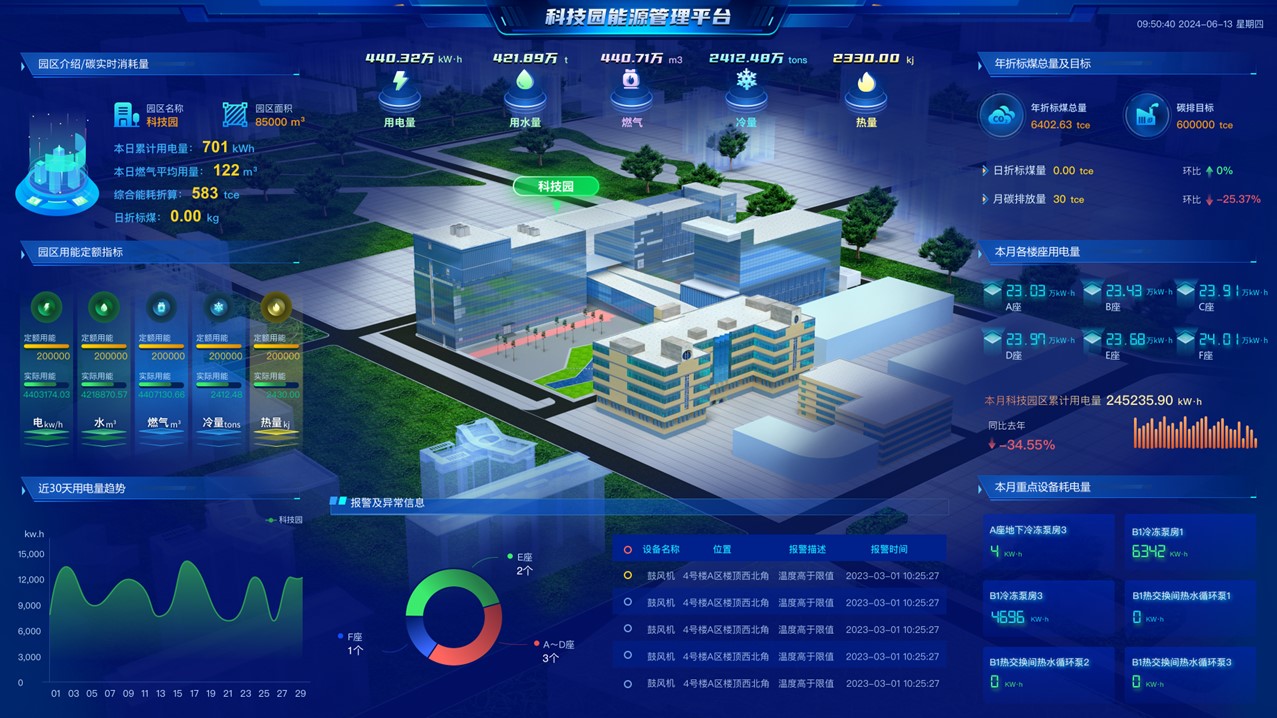 隨著城市化進程的加快,智慧園區的建設已成為城市發展的重要一環,在能源管理方面也有更高要求。傳統園區普遍面臨用能單位繁雜、能源數據分散、供能保障不足、能源消耗高、監管困難等問題,難以滿足現代園區能源高效利用、綠色環保的要求。