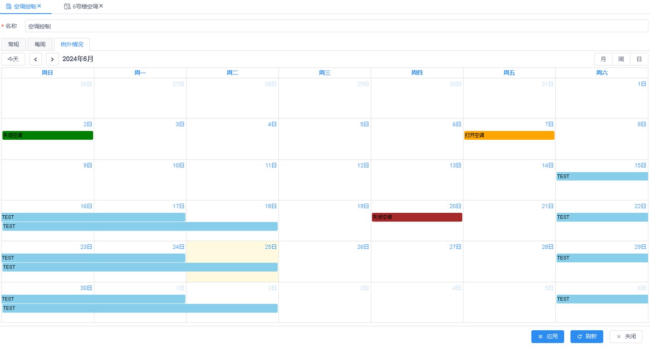 空調系統:結合樓宇內外環境參數(如溫度、濕度、人員密度等),可通過時間調度表智能調整空調運行狀態,確保室內環境舒適,同時降低能耗。