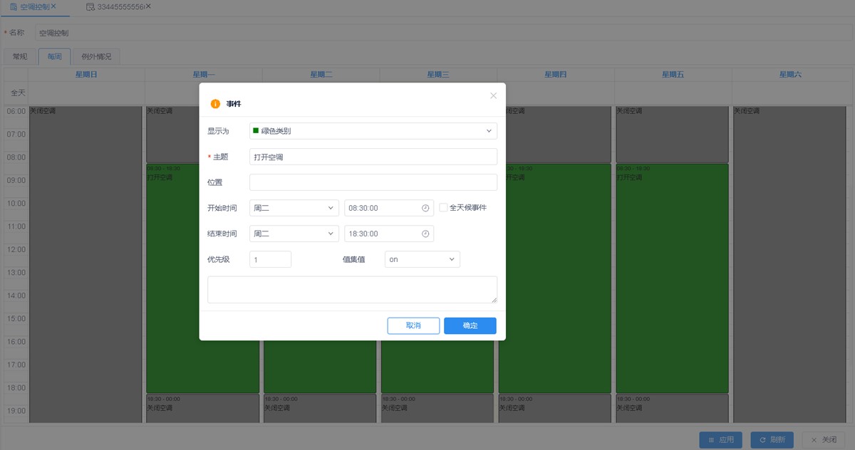 以某商業辦公樓為例,該樓宇配備了先進的智能化管理系統,其中時間調度表作為核心組件之一,廣泛應用于照明、空調設備的智能調度。
