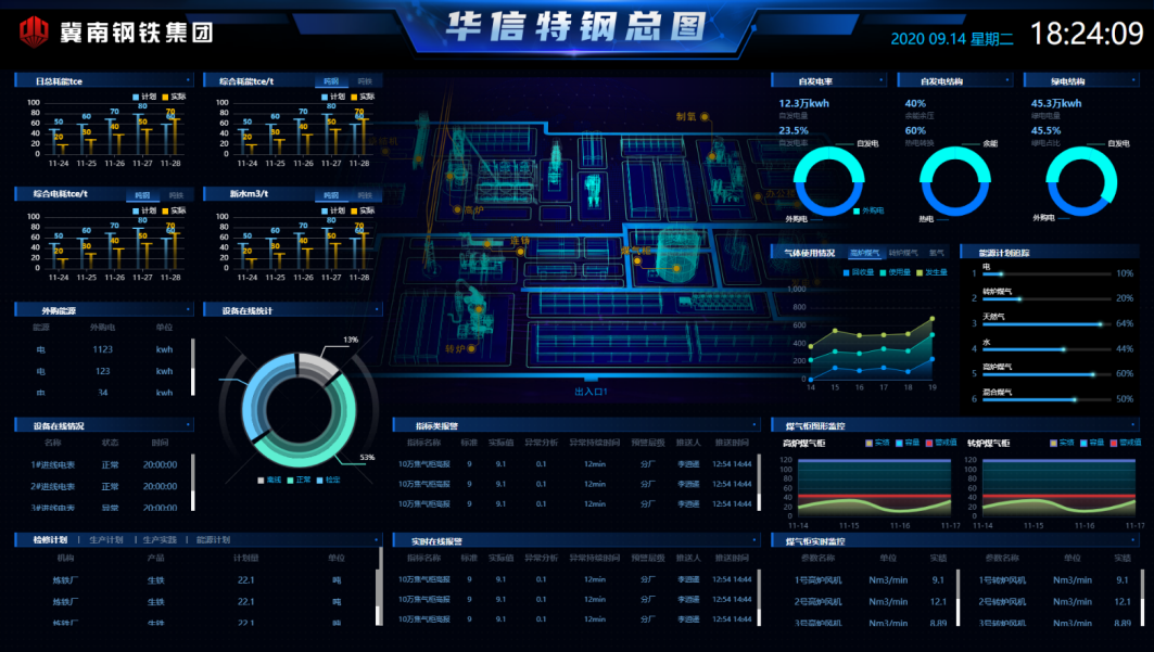 大屏看板大屏看板,可將企業能源消耗、能源績效、用能成本等核心數據集中展示。