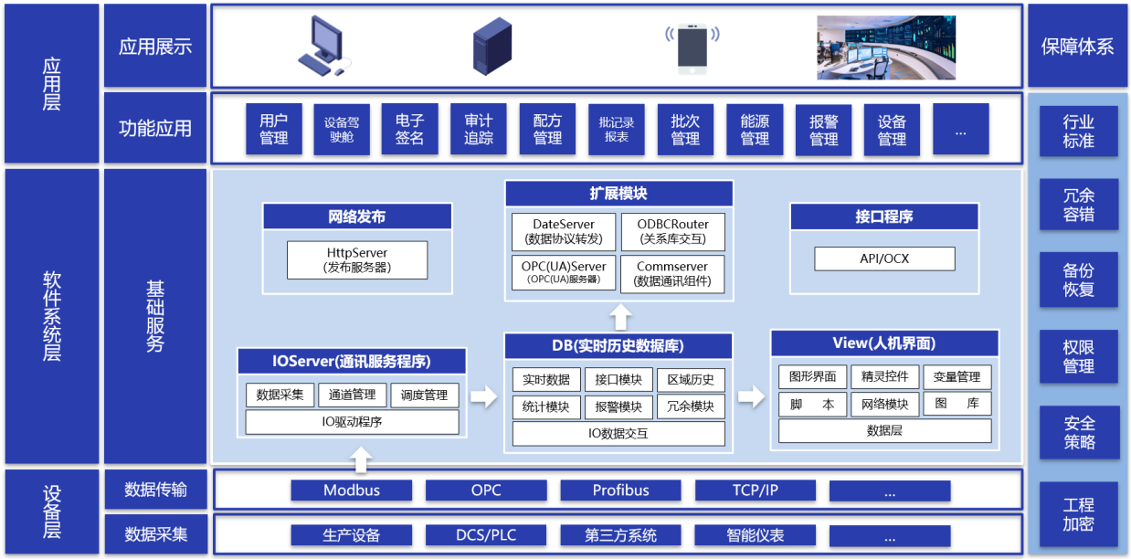 力控醫藥版SCADA是力控科技為制藥企業用戶工業信息化應用打造的基礎軟件平臺,設計涵蓋從現場監控站到調度中心,提供生產信息采集監控、設備運維與能耗管理、多系統聯動等業務應用,可與MES系統進行交互,實現數據融合。產品符合醫藥行業FDA、GMP、GAMP5等規范指南設計要求,為用戶提供完備的用戶權限管理和安全策略,包含審計追蹤、電子簽名、配方、批記錄報表等功能,操作過程可進行記錄與追溯,數據庫文件加密防篡改,格式專有化,數據修改可留痕,歷史數據本地/異地雙備份,保障數據安全。